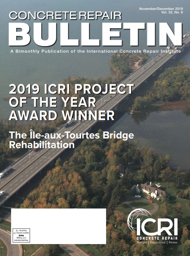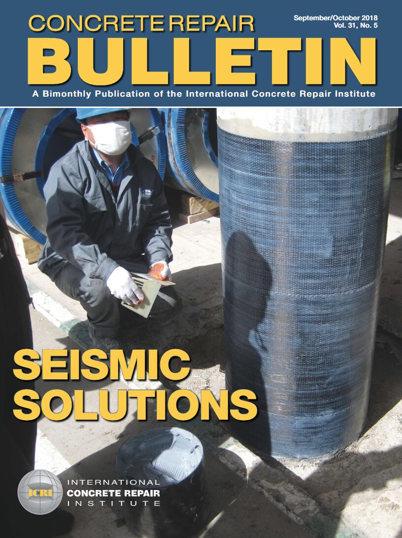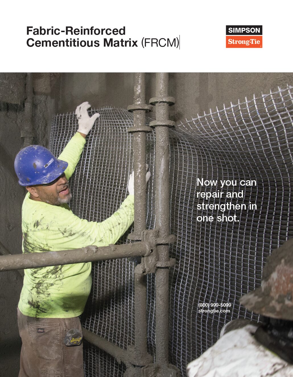 The FRCM system consists of two components: a sprayable, fiber-reinforced cementitious matrix and a carbon-fiber grid.
