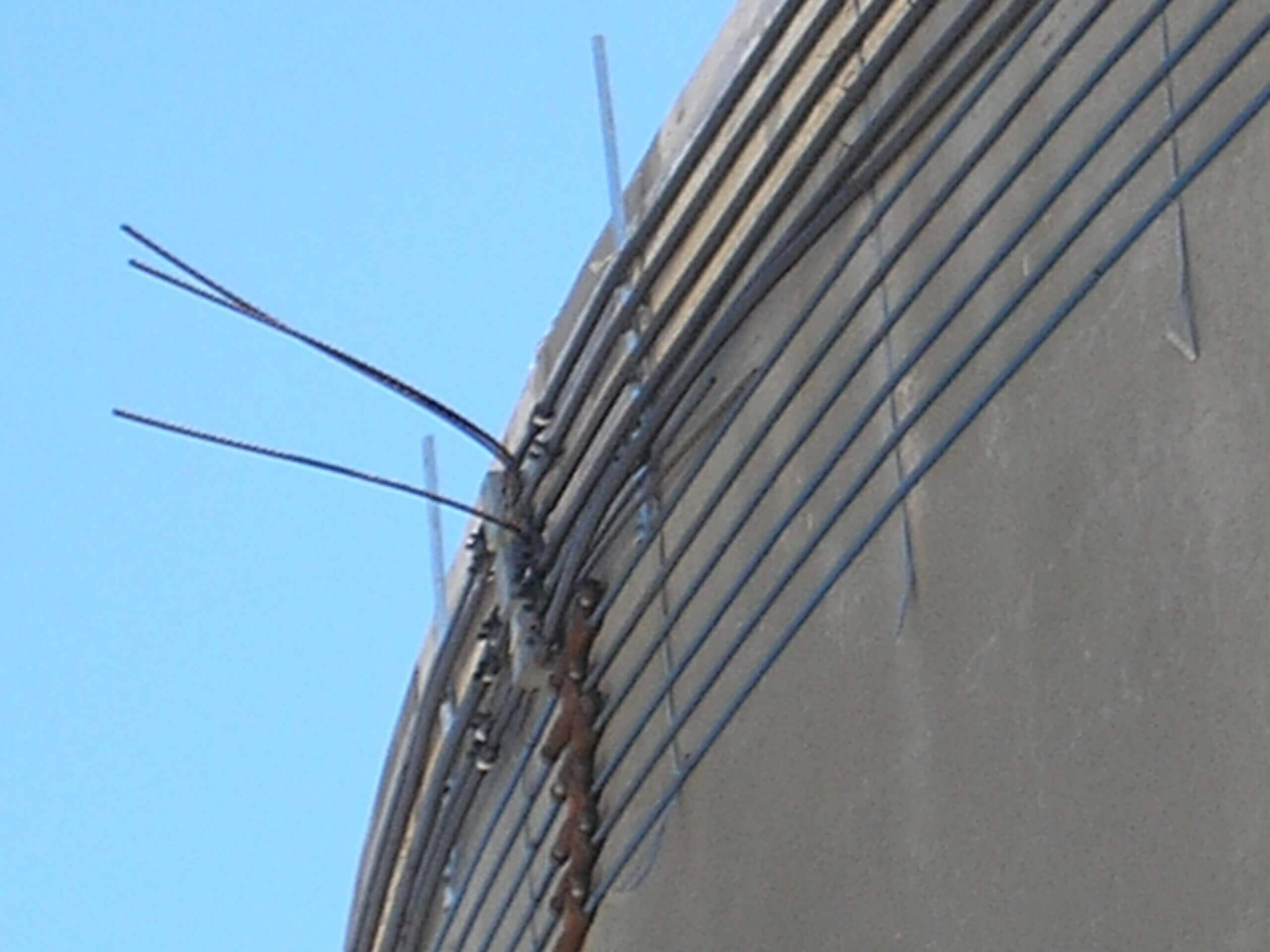 Tstrata refined the owner’s original concept in order to provide a long-lasting solution. The engineer determined that the root cause of the failure was due to leakage in the joint above the dome ring beam in the tank, allowing water into the concrete behind the beam. The infiltration caused the wires to corrode and upon failure, the beam fell. In order to repair the structure external post-tensioning was specified.