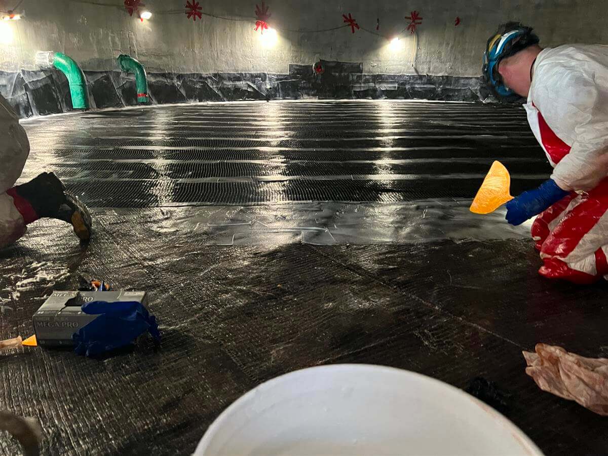 The STRUCTURAL team mobilized to complete the repairs which took place over a 21-day window. The repair procedure developed consisted of cleaning, surface preparation and installation of the CSS V-WrapTM system to the lower portion of the tank and tank floor, in accordance with the approved design.