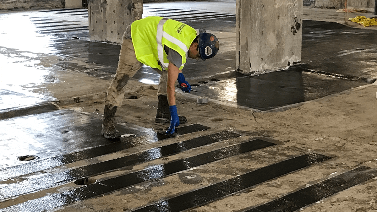STRUCTURAL, a licensee of Tstrata products, was contracted to strengthen six-floors of slab with concrete repairs, penetration infills, crack infills, shear capitals, and CFRP installation. The renovation also included concrete repairs to the walls, ceiling, and beams, in addition to strengthening the beam’s shear with a CFRP solution.