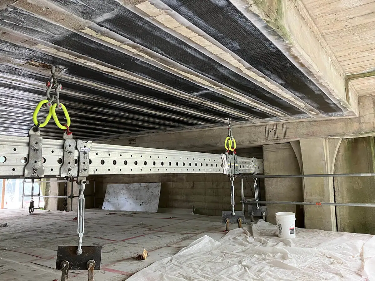 A seismic retrofit using the CSS V-Wrap™ carbon-fiber system strengthened the historic McGraw Street Bridge, improving load capacity and earthquake resilience for long-term service.