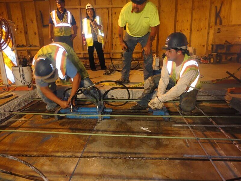 The scope of the project included providing extensive general concrete repair and maintenance and post-tensioned repair. In total, the repair included the installation of 631 new post-tensioned end anchors and more than five miles of new post-tensioned tendons. The project also required 5,000 square feet of partial-depth concrete repair and 8,800 square feet of full-depth repair.