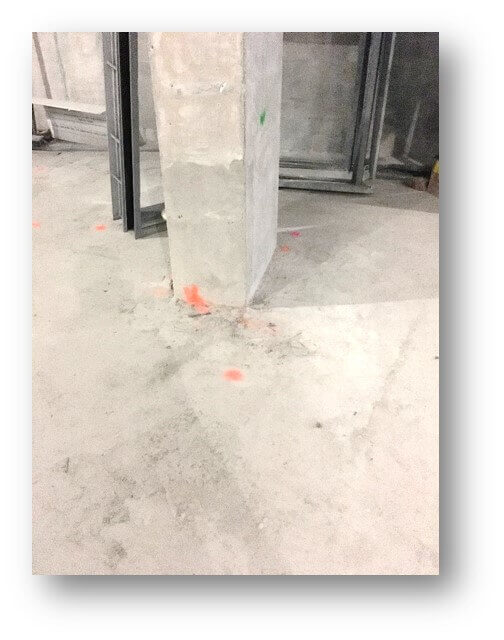 During construction of a 23-story luxury condominium, an area of the slab became overloaded with materials causing punching shear in six columns. The emergency repair required various strengthening techniques including the installation of 9” drop panels and near surface mount (NSM) rods on all six columns, full-depth demolition and new steel around two of the columns, and epoxy injection prior to the installation of STRATA’ V-Wrap™ C200H CFRP system.