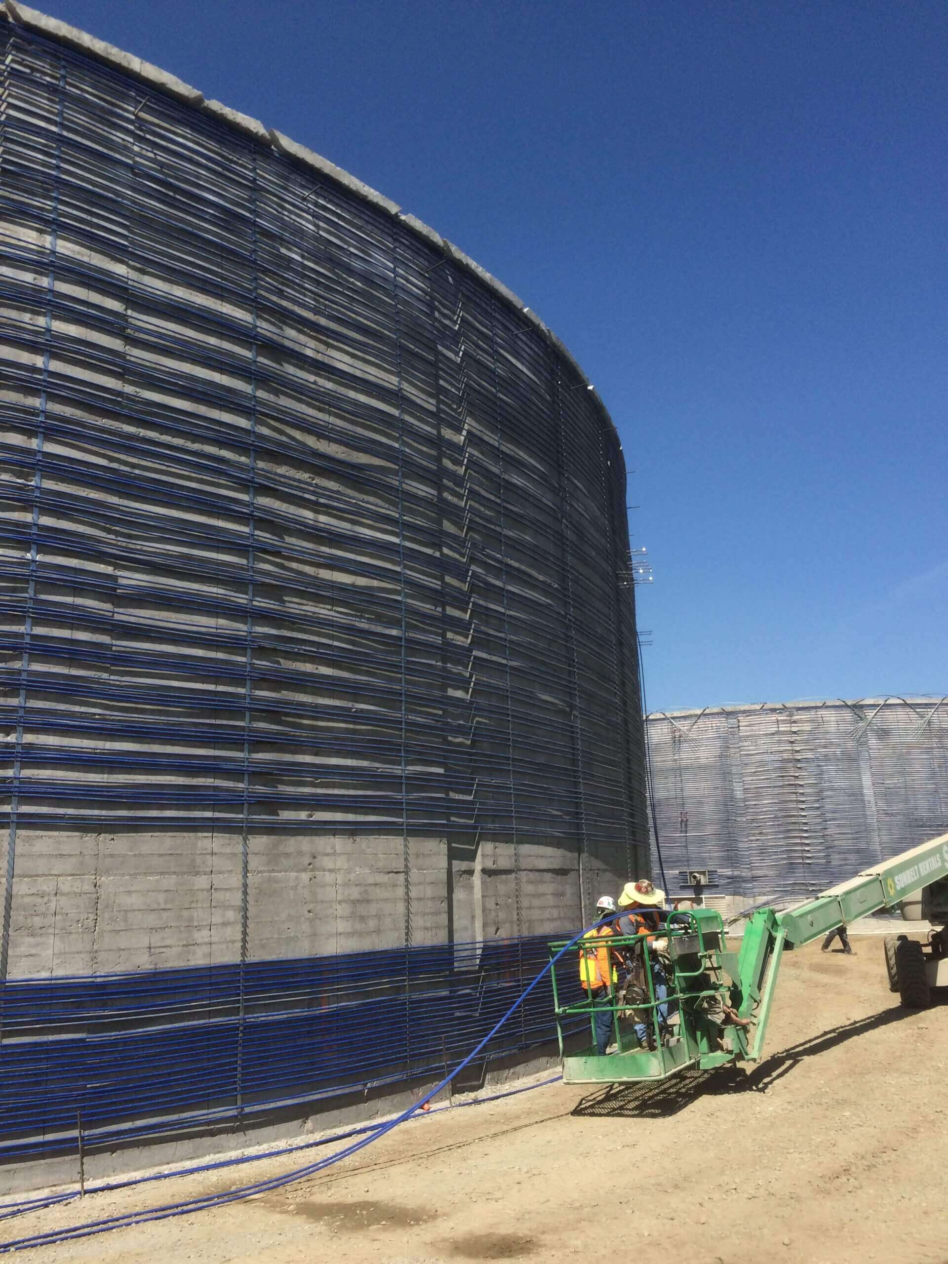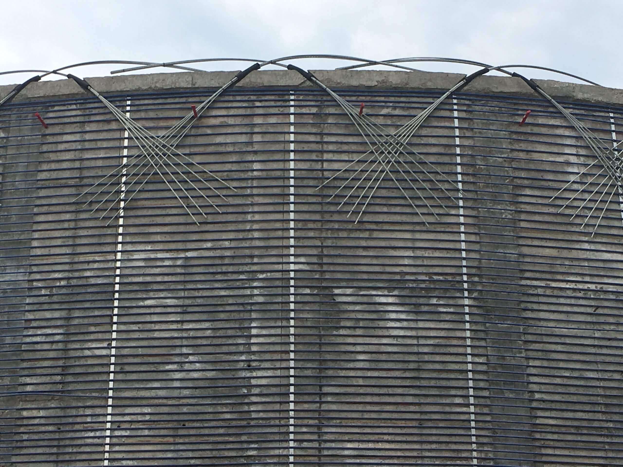 The structural design initially required three separate layers of external post-tensioning and shotcrete to wrap each tank. Tstrata was able to value engineer a solution that only required 1.5 layers of post-tensioning by spacing strands tighter at two inches on center, thereby maximizing spacing efficiency. This value engineering approach provided a more cost efficient solution as well as a shorter construction schedule for the city without jeopardizing tank performance.