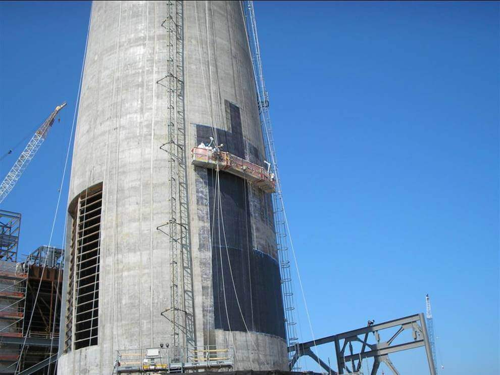 A new power plant in the southern United States was being constructed when the builders noticed that a portion seismic reinforcement was inadvertently omitted, creating a major structural defect within the chimney. The project was on a very stringent schedule, so removal or replacement of the sections was not an option.